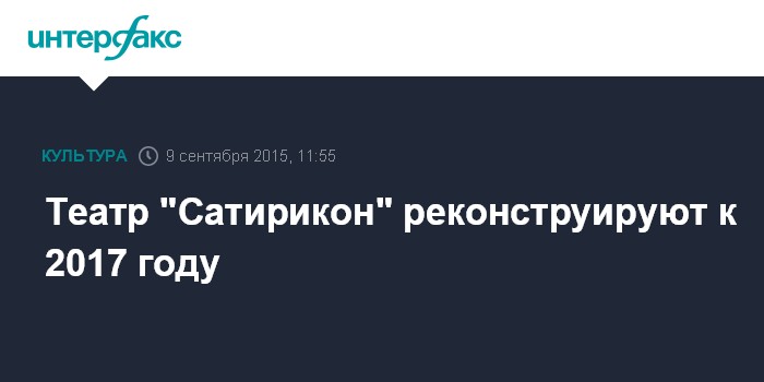 Москва. 9 сентября. INTERFAX.RU - Реконструкция и модернизация федерального государственного учреждения культуры "Российский государственный театр "Сатирикон" имени Аркадия Райкина" завершится в 2017 году, сообщила порталу "Интерфакс" партнер фонда имени А.И. Райкина компания "Ташир".