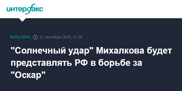 Москва. 21 сентября. INTERFAX.RU - Фильм "Солнечный удар" Никиты Михалкова выдвинут российским оскаровским комитетом на соискание премии Американской киноакадемии, сообщили в понедельник "Интерфаксу" в комитете.