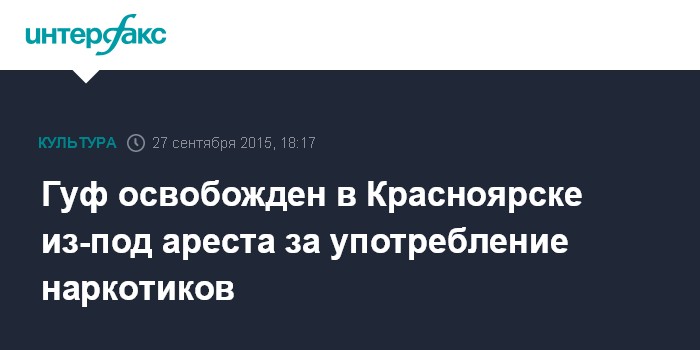 Москва. 27 сентября. INTERFAX.RU - Алексей Долматов, выступающий под сценическим псевдонимом Гуф, в воскресенье выпущен из изолятора временного содержания в Красноярске, сообщил агентству "Интерфакс" руководитель общественного общероссийского антинаркотического движения "Антидилер" Максим Шарин.