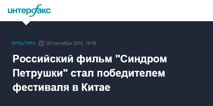 Российский фильм "Синдром Петрушки" стал победителем фестиваля в Китае