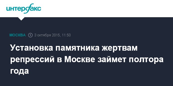 Накануне глава президентского совета по правам человека (СПЧ) Михаил Федотов сказал "Интерфаксу", что памятник может быть открыт в 2016 году 30 октября - в День памяти жертв политических репрессий.