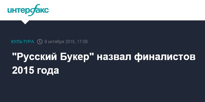 Москва. 9 октября. INTERFAX.RU - В пятницу стал известен шорт-лист "Русского Букера", об этом заявили "Интерфаксу" организаторы премии.