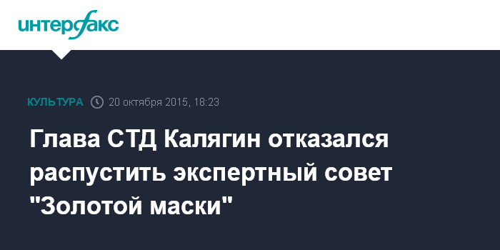 Москва. 20 октября. INTERFAX.RU - Председатель Союза театральных деятелей (СТД) России Александр Калягин отказался выполнить просьбу российских театральных критиков распустить экспертный совет фестиваля "Золотая маска", говорится в открытом письме рабочей группы по развитию премии "Золотая маска", опубликованном во вторник на сайте СТД.
