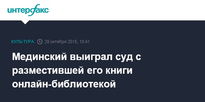 Мединский выиграл суд с разместившей его книги онлайн-библиотекой