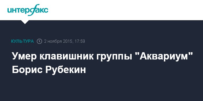 Москва. 2 ноября. INTERFAX.RU - Ушел из жизни клавишник группы "Аквариум" Борис Рубекин. Об этом сообщил сегодня в фейсбуке Борис Гребенщиков.