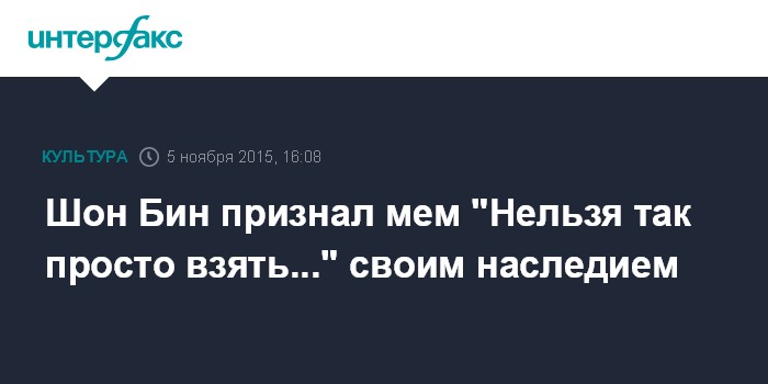 Москва. 5 ноября. INTERFAX.RU - Британский актер Шон Бин признал интернет-мем "Нельзя так просто взять и..." своим наследием.