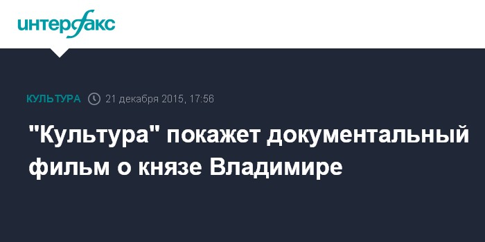Москва. 21 декабря. INTERFAX.RU - Телеканал "Культура" (ВГТРК) покажет в понедельник фильм о равноапостольном князе Владимире, сообщили "Интерфаксу" в пресс-службе телеканала. Премьера фильма состоится в ночь на вторник в 00:40.