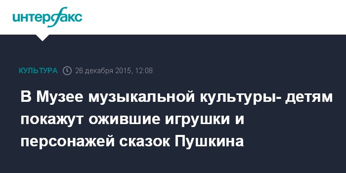 В Музее музыкальной культуры детям покажут ожившие игрушки и персонажей сказок Пушкина