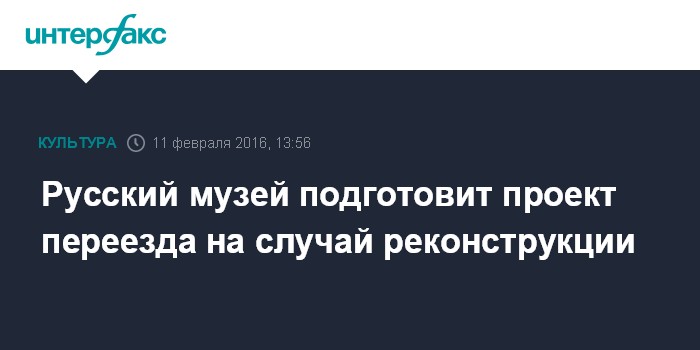 Москва. 11 февраля. INTERFAX.RU - Русский музей готовит проект переезда фондов на случай возможной реконструкции Михайловского дворца (основного здания музея - ИФ), сообщили "Интерфаксу" в пресс-службе музея в четверг.