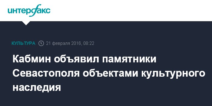 Москва. 21 февраля. INTERFAX.RU - Премьер-министр России Дмитрий Медведев подписал распоряжение об отнесении объектов культурного наследия, расположенных в Севастополе, к объектам культурного наследия федерального значения, сообщает в воскресенье сайт правительства РФ.