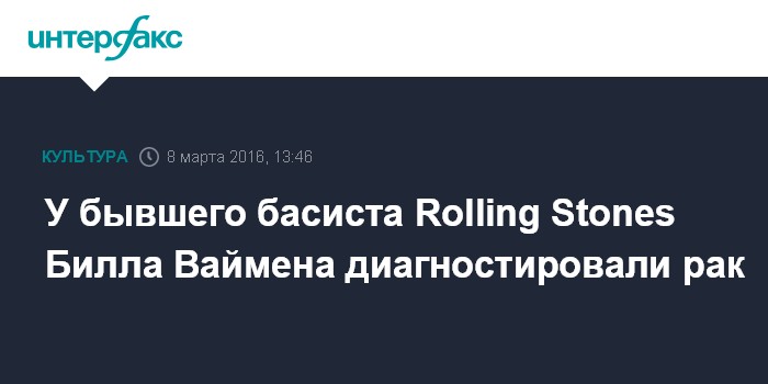 Москва. 8 марта. INTERFAX.RU - Британский басист Билл Ваймен, длительное время выступавший в составе группы Rolling Stones, болен раком простаты, сообщают во вторник лондонские СМИ.