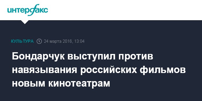 Бондарчук выступил против навязывания российских фильмов новым кинотеатрам