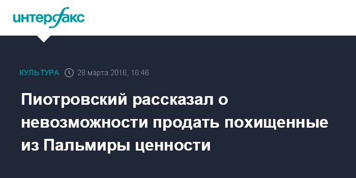 Пиотровский рассказал о невозможности продать похищенные из Пальмиры ценности