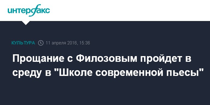 Москва. 11 апреля. INTERFAX.RU - Прощание с народным артистом России Альбертом Филозовым пройдет в среду 13 апреля в помещении театра "Школа современной пьесы".
