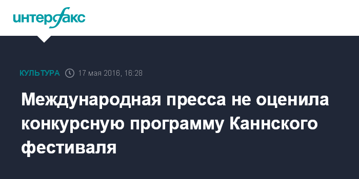 Москва. 17 мая. INTERFAX.RU - Международная пресса недовольна конкурсной программой 69-го Каннского фестиваля, передает из Франции корреспондент "Интерфакса". Согласно ежедневным рейтингам кинокритикам, публикуемым в специальных выпусках американского журнала Screen Daily, ни один из показанных конкурсных фильмов пока не получил высшей оценки.