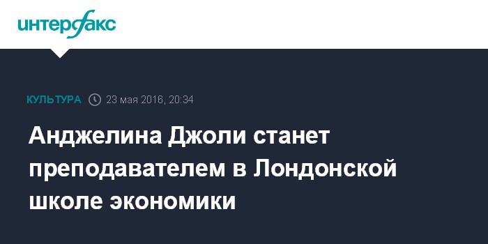 Москва. 23 мая. INTERFAX.RU - Голливудская актриса Анджелина Джоли получила должность приглашенного преподавателя (visiting professor) в Лондонской школе экономики, сообщает официальный сайт образовательного учреждения.