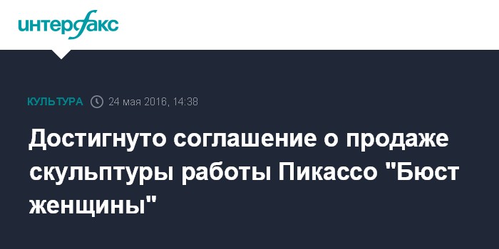 Москва. 24 мая. INTERFAX.RU - Конфликтующие стороны, которые в суде боролись за право приобрести скульптуру работы Пабло Пикассо "Бюст женщины", пришли к соглашению, сообщает Bloomberg.
