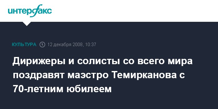 Москва. 12 декабря. INTERFAX.RU - В Большом зале Петербургской академической филармонии имени Шостаковича в пятницу состоится гала-концерт "С днем рождения, маэстро!", посвященный 70-летию дирижера Юрия Темирканова.