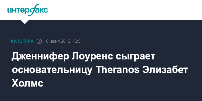 Москва. 10 июня. INTERFAX.RU - Обладательница премии "Оскар" Дженнифер Лоуренс сыграет в новом фильме об основательнице биотехнологического стартапа Theranos Элизабет Холмс.