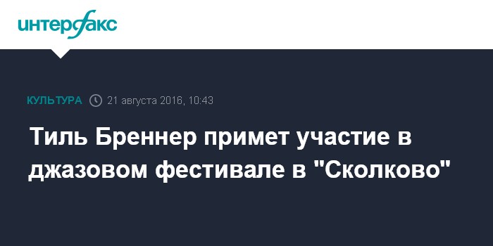 Тиль Бреннер примет участие в джазовом фестивале в "Сколково"