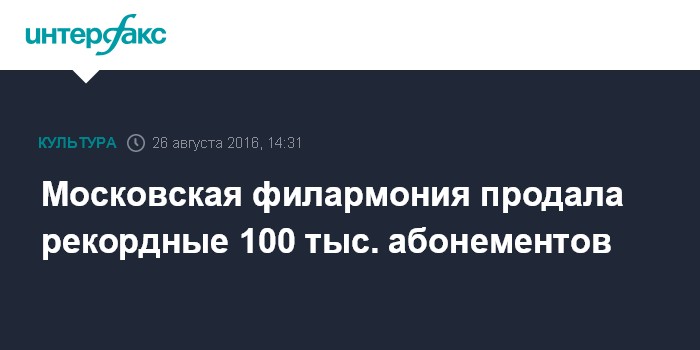 "На сегодняшний день продано более 100 тысяч абонементов Московской филармонии. Этот абсолютный рекорд по продажам абонементов за все время существования музыкального учреждения", - говорится в сообщении.
