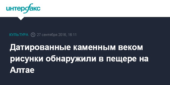 Москва. 27 сентября. INTERFAX.RU - Жители села Верх-Мута в Республике Алтай обнаружили в пещере рисунки животных, предположительно датированные каменным веком, сообщает во вторник пресс-центр республиканского правительства.
