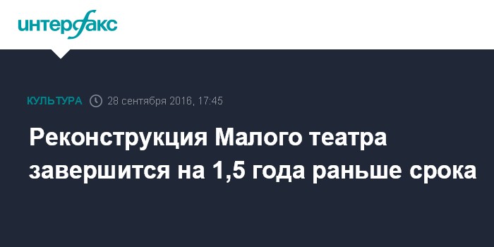 Реконструкция Малого театра завершится на 1,5 года раньше срока