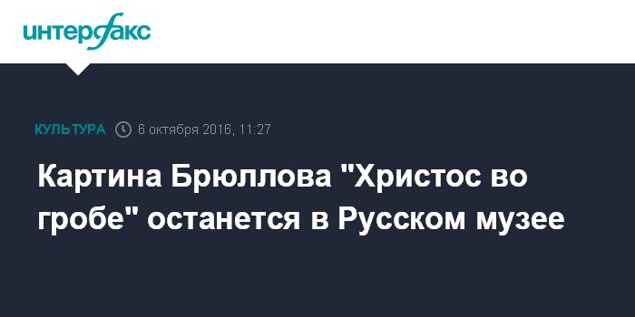 Картина Брюллова "Христос во гробе" останется в Русском музее