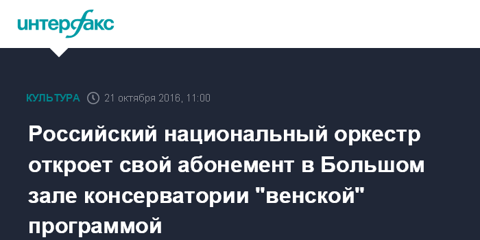 Российский национальный оркестр откроет свой абонемент в Большом зале консерватории "венской" программой