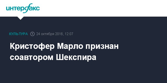 Москва. 24 октября. INTERFAX.RU - Британский писатель Кристофер Марло признан соавтором исторической хроники Шекспира "Генрих VI". Фамилии обоих драматургов появятся на титульном листе академического издания, которое готовит к публикации Оксфордский университет. Об этом в воскресенье пишет The Guardian.