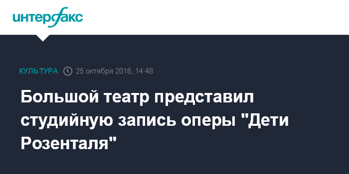 Большой театр представил студийную запись оперы "Дети Розенталя"