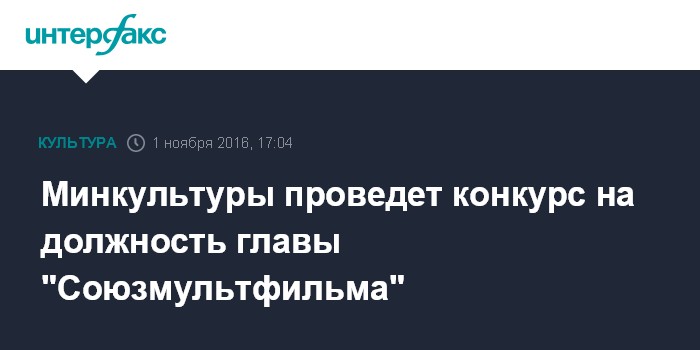 Москва. 1 ноября. INTERFAX.RU - Министерство культуры РФ объявило конкурс на замещение должности директора "Союзмультфильма", сообщается на сайте ведомства во вторник.