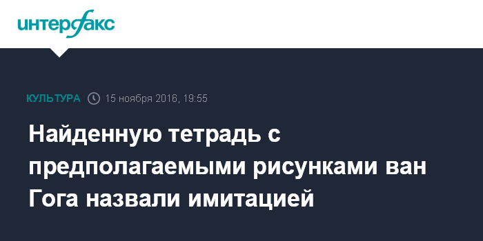 Москва. 15 ноября. INTERFAX.RU - Обнаруженная во Франции тетрадь с рисунками, авторство которых приписывалось Винсенту ван Гогу, является имитацией, заявили во вторник в музее Ван Гога в Амстердаме.