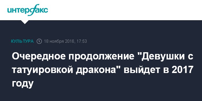 Очередное продолжение "Девушки с татуировкой дракона" выйдет в 2017 году