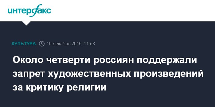 Около четверти россиян поддержали запрет художественных произведений за критику религии