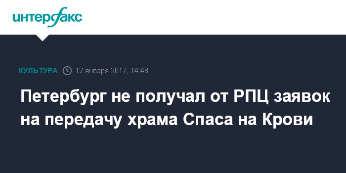 "Заявок на передачу объекта (храма Спаса на Крови - ИФ) не поступало, я не слышал ни о каких действиях по этому объекту", - сказал он на пресс-конференции в четверг.