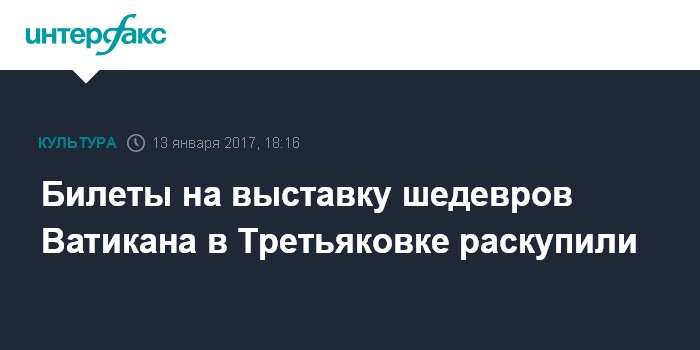 Билеты на выставку шедевров Ватикана в Третьяковке раскупили