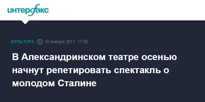 Москва. 18 января. INTERFAX.RU - Александринский театр в Петербурге в сентябре приступит к репетициям спектакля об Иосифе Сталине.