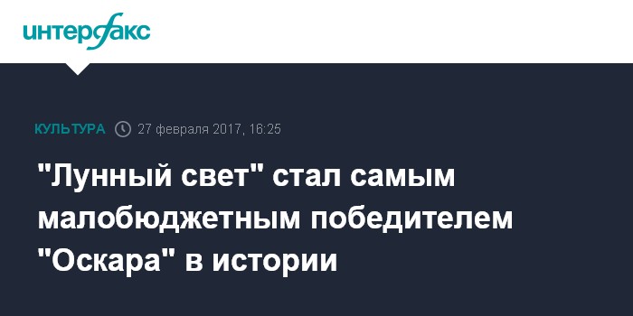 Москва. 27 февраля. INTERFAX.RU - Фильм режиссера Барри Дженкинса "Лунный свет", взявший "Оскара" в номинации "Лучший фильм", стал самым малобюджетным