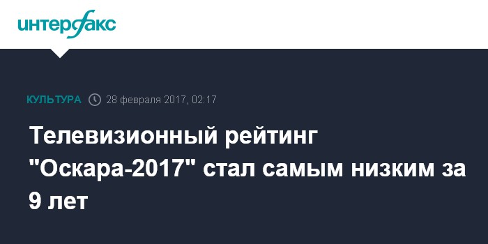 Телевизионный рейтинг "Оскара-2017" стал самым низким за 9 лет