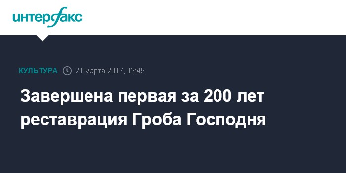 Москва. 21 марта. INTERFAX.RU - Реставрация часовни (кувуклии) над местом погребения Христа в храме Гроба Господня в Иерусалиме завершена. Как ожидается, в среду в присутствии представителей христианских конфессий состоится открытие кувуклии, сообщает во вторник сайт британской газеты The Catholic Herald.
