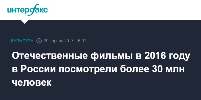 Отечественные фильмы в 2016 году в России посмотрели более 30 млн человек