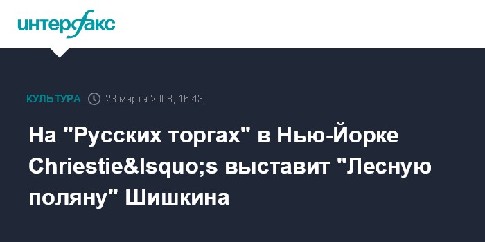 На "Русских торгах" в Нью-Йорке Chriestie‘s выставит "Лесную поляну" Шишкина