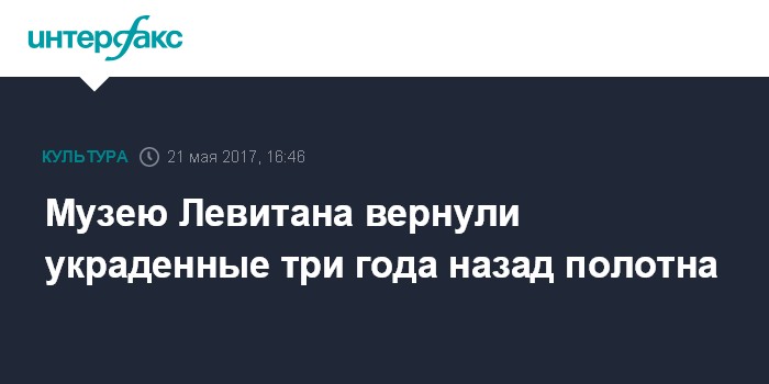 Москва. 21 мая. INTERFAX.RU - Похищенные в 2014 году картины Исаака Левитана стоимостью порядка 77 млн рублей возвращены музею художника в Плёсе.