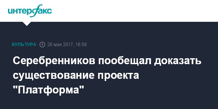 Москва. 26 мая. INTERFAX.RU - Художественный руководитель "Гоголь-центра" Кирилл Серебренников, который был допрошен в качестве свидетеля по делу о хищениях бюджетных средств основанной им компанией "Седьмая студия", заявил, что готов доказать, что проект компании "Платформа" состоялся.