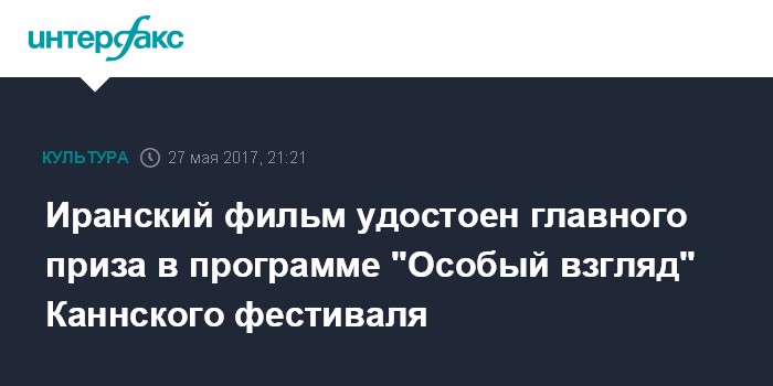 Иранский фильм удостоен главного приза в программе "Особый взгляд" Каннского фестиваля
