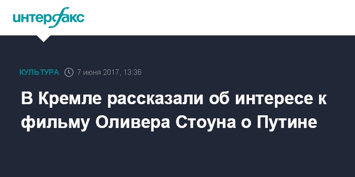 "Мы ждем с нетерпением, когда он выйдет. Нам интересно, как Оливер Стоун скомпоновал материал. Он человек очень непредсказуемый в плане творческих проявлений, поэтому нам самим интересно. Мы еще пока его (этот фильм) не видели", - сказал Песков.