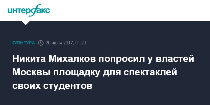 Москва. 20 июня. INTERFAX.RU - Режиссер Никита Михалков, который также является ректором Академии кинематографического и театрального искусства, попросил власти Москвы предоставить временную площадку для спектаклей его студентов.