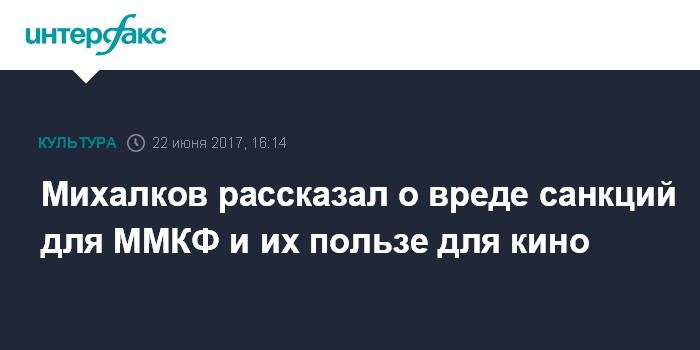 Москва. 22 июня. INTERFAX.RU - Президент Московского международного кинофестиваля (ММКФ) Никита Михалков заявил, что санкции нанесли серьезный ущерб ММКФ, но за счет этого возник интерес к кино.