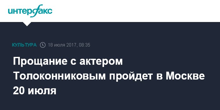 Прощание с актером Толоконниковым пройдет в Москве 20 июля